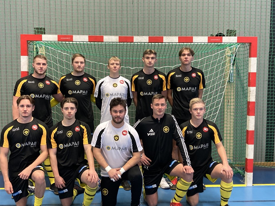 I lördags gick den traditionsenglia futsal cupen av stapeln, detta i form av MAPAB cupen efter cupens huvudsponsor. Våra gulsvarta hjältar inledde hela festen genom att vinna över Månsarp med 1-0 i öppningsmatchen efter att Simon Jonsson nickat in 1-0 efter ett välplacerat utkast av en stensäker Mika "Pekka" Wenroth, som var lätt att förväxla med en tegelvägg. MIF dominerade första matchen med ett högt bolltempo och ett gedigert försvarsspel. I omgång två stod ett ungt Råslätt för motståndet och även här visade MIF upp ett tryggt bollspel och stabilt försvar. Väl det fåtal gånger som Råslätt kom till läge stod Casper "Osten" Gyllensvaan rätt placerad. Vi sätter varandra i bra lägen med fina passningar bra löpningar, så pass bra att till och med våra två yngsta junisar Gustav Lundh och Wille Rosén lyckas näta ett respektive två mål vilket leder till en stabil 3-0 seger för de gula och svarta. I den tredje omgången är det dags för det alla har väntat på. Inför fullsatta läktare är det dags för matchen mellan Mullsjö och Sandhem. För den ovetande var det varit lätt att förväxla de båda lagen (om man bortser från matchställen) då Sandhemslaget bestod av många forna MIF spelare, så som Charlie Gustafsson, Marcus Palm, bröderna Molin och Casper Bolmstad. Det var upplagt för en hård kamp mellan två fiender sedan urminnes tider. Tyvärr visades inte detta i spelet på något sätt... det blev en händelsefattig match med dåligt tempo, sena tacklingar och få målchanser, men det är kanske det man får förvänta sej av två div 6 lag. I och med två vinster och en oavgjord hamnar Mullsjö på en första plats i grupp A och får möta Norrahammar i semifinal. Från Mullsjös grupp A gick även Sandhem vidare med sina 5 poäng. I grupp B gick Mariebo och Norrahammar vidare med 5 poäng vardera. Semifinalen mellan MIF och Norrahammar blev en jämn historia, tyvärr inleder Norrahammar med att bara efter några sekunder smälla in 0 - 1 i Ostens bortre stolpe. Men MIF ger inte upp och vaskar fram målchans efter målchans. Norrahammars målvakt får göra ett flertal bra räddningar. MIF lyckas inte knäcka Norrahammar och matchen slutar 0 - 1, efter en bra försvarsinsats av det rödvita Norrahammarslaget. Allt som allo gör de gulsvarta en bra turnering med många ljusa glimtar. Det ska se ska bli spännade att följa utvecklingen av detta unga och låvande MIF lag. I den andra semifinalen ställs Sandhem mot Mariebo, där Jönköpingslaget vinner med 3 - 0. Finalen blir en lätt match för Norrahammar där de vinner med 3 - 1 och även där vinner genom ett bra försvars och målvaktsspel trots att Mariebo trycker på mot slutet för att komma tillbaka i matchen. Resultat Grupp A Mullsjö: 7 poäng, +7 målskillnad Sandhem: 5, +1 Månsarp 2: 3, +1 Råslätt: 0, -5 Gruppspel grupp A Mullsjö - Månsarp 2 1 - 0 Råslätt - Sandhem 1 - 2 Sandhem - Månsarp 2 0 - 0 Råslätt - Mullsjö 0 - 3 Månsarp - Råslätt 2 - 0 Mullsjö - Sandhem 0 - 0 Grupp B Mariebo: 6 poäng, +2 målskillnad Norrahammar: 6, +2 Månsarp: 4, -2 Habo: 1, -2 Gruppspel grupp B Habo - Månsarp 1 - 1 Mariebo - Norrahammar 0 - 2 Månsarp - Mariebo 0 - 3 Norrahammar - Habo 1 - 0 Månsarp - Norrahammar 1 - 0 Habo - Mariebo 1 - 2 Semifinaler Mullsjö - Norrahammar 0 - 1 Mariebo - Sandhem 3 - 0 Final Norrahammar - Mariebo 3 - 1
