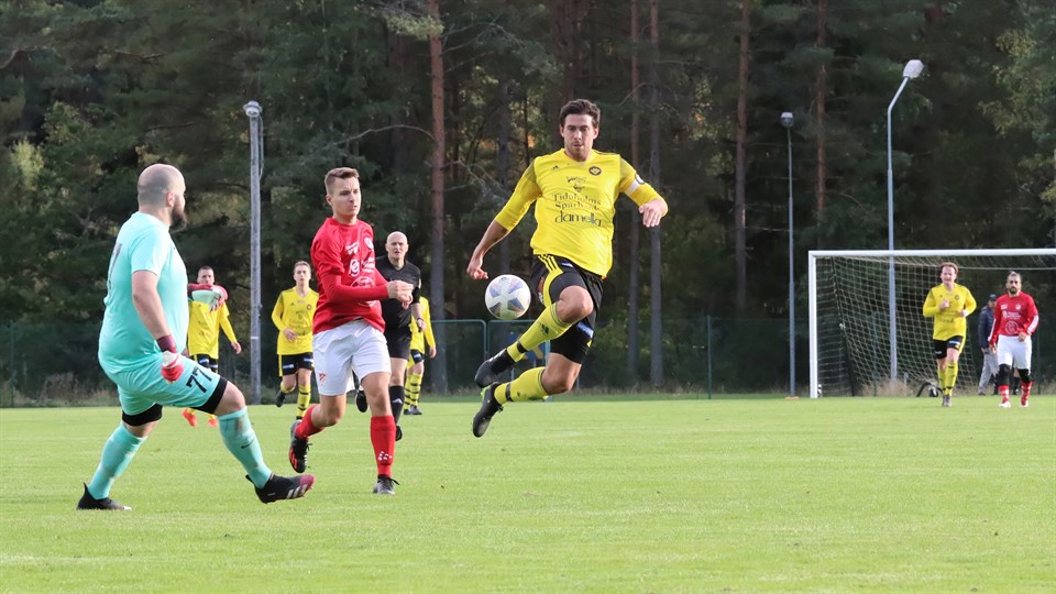 I söndags skrevs det historia på Gruveredsvallen när herrlaget tog tre viktiga poäng i drabbningen mot Norrahammar. Klubbens bäste målskytt genom tiderna, Jimmy Lindberg, nådde en häftig milstople när han satte 4-1 i matchminut 86'. Det innebar mål nummer 200 för klubben. I årets upplaga av division 5 har 32-årige Jimmy Lindberg varit lysande. Av Mullsjös totalt 41 mål har Jimmy gjort gjort 25 av dessa. Det räcker just nu till en andraplats i skytteligan. Men med två matcher kvar att spela så ser det onekligen ut som Mullsjös formstarke anfallare har goda möjligheter att nå toppen av den statistiken. Foto: Carl Cedergren.