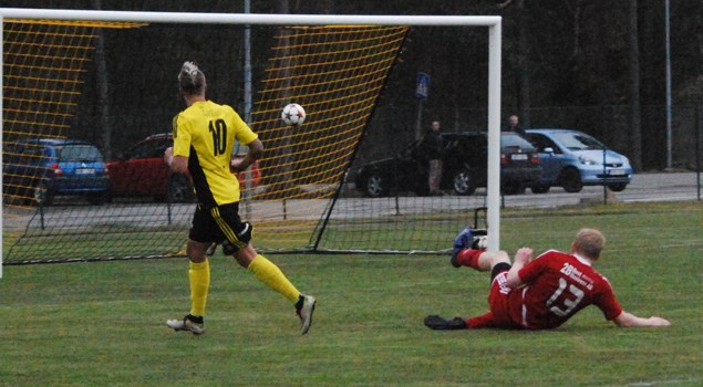 I dagens hemmapremiär mot Kulltorp blev det vinst med 3-2 (1-1) I förra årets möte med Kulltorp så blev det vinst på bortaplan och förlust hemma, så vi visste att vi måste vara skärpta och på tå för att ta 3 poäng i denna match. Men vi är inte särskilt vakna i inledningen av matchen faktum är att vi inte är över halva plan innan Kulltorp tar ledningen i matchminut 3, man är aldrig glad när man släpper in mål, men i detta fall så var det som behövdes för att väcka oss. Vi får lite fart på fötterna och vinner fler närkamper, för det är det som gäller i dagens match. Något skönspel blir det inte, utan mer kamp, vinna boll och snabba omställningar Och det är på en omställning i matchminut 11 som Villiam dundrar in kvitteringen till 1-1, det är också halvtid resultatet. Andra halvleks första del är spelmässigt bättre, vi har bättre fart på passningspelet och får utdelning direkt när Mats på egen hand från halva plan i kamp med en motståndare sliter och löper sig fri och väldigt snyggt lyfter bollen över en utrusande Mv 2-1 i matchminut 48. Efter det målet så skapar vi fler farliga lägen och det ser bra ut, i matchminut 62 får vi frispark strax utanför straffområdet, Fidde förvaltar den på bästa sätt genom att trycka upp den i nättaket, snyggt. Kulltorp reducerar på straff i den 77 minuten och i den situationen får vi en spelare utvisad, vi får lite tryck på oss men reder ut det på ett bra sätt, Matchen slutar 3-2. Nästa hemmamatch är Cupmatch mot Div 4 laget Waggeryd Tisdag 2/5 kl 18,45 //Pirven