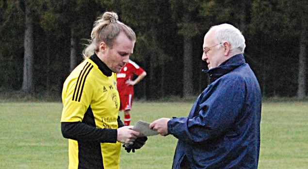 I Fredagens match mot Kulltorp gjorde Tommy Gustafsson sin 300:e match i A-laget, här får han pris av MIF kassören Jan-Olof Larsson. Grattis Tommy!
