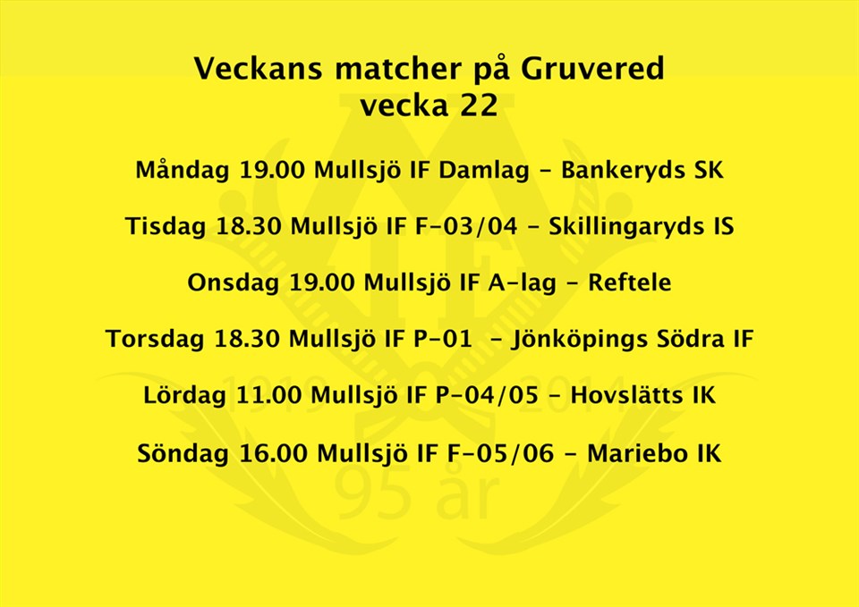 Veckans matcher på Gruvered v.22