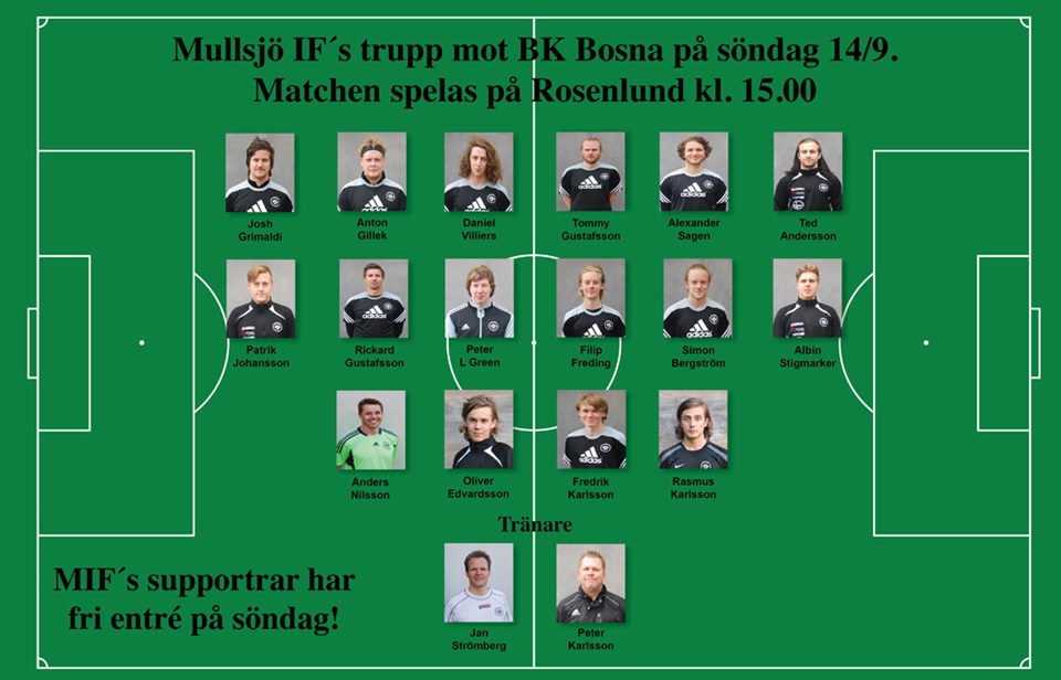 Det var inte mycket som stämde för Mullsjö idag när man mötte BK Bosna på Rosenlund. 3-1 blev slutresultatet och jag skulle vilja kalla det en kollektiv kollaps, tyvärr så möter vi ett ganska mediokert Bosna men ingen av Mullsjöspelarna kom upp i normal standard och resultatet var helt rättvist. Men vi glömmer denna matchen och ser framåt emot nästa Lördag då vi möter NIK hemma.