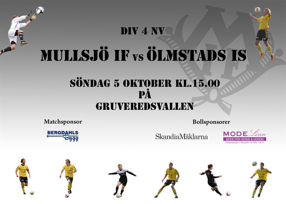 Söndag 5/10 spelas sista omgången i serien och MIF möter Ölmstads IS hemma på Gruvered kl 15.00. För att klara en kvalplats är vinst ett måste men det räcker inte med vinst vi måste förlita oss på andra resultat också.
