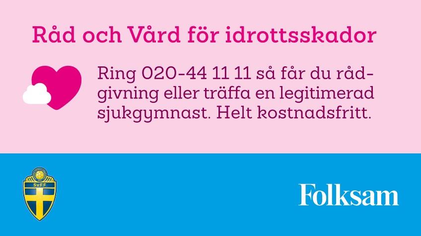 Råd och Vård för idrottsskador är en kostnadsfri rådgivningstjänst och ingår i medlemsförsäkringen för fotbollsspelare. Dit kan du som spelare, ledare och förälder i Mullsjö IF ringa och få råd om hur du förebygger skador och besvär som kan uppstå i samband med fotbollsaktiviteter. Klicka på länken här för att komma till informationssidan om Råd och vård för idrottsskador. När du ringer Råd och vård på 020-44 11 11 får du prata med en legitimerad fysioterapeut / sjukgymnast som är specialist på idrottsskador. Skulle den som idrottar bedömas behöva mer än rådgivning ingår upp till två besök hos sjukgymnast och ett läkarbesök hos vårdgivare specialiserade på idrottsskador. Ring vardagar mellan kl 08:00-17:00. Ett tips till alla är att lägga in 020-44 11 11 i din telefonbok så har du det nära till hands. Om du har råkat ut för ett olycksfall hjälper sjukgymnasten dig att dokumentera och anmäla skadan direkt till Folksam. OBS Har du frågor om försäkring eller ersättning ska du kontakta Folksam på 0771-950 950. // Emil Fritzell Styrelseledamot i Mullsjö IF 076-711 40 85 emilfritzell@hotmail.com