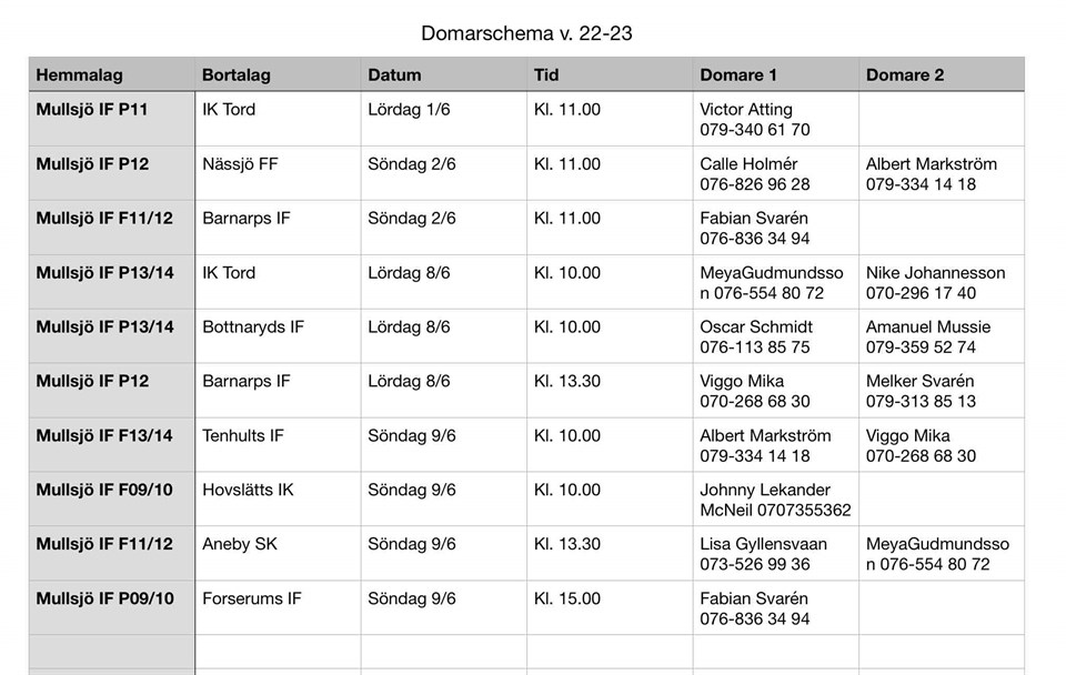• Uppdaterat domarschema v22-24 bild